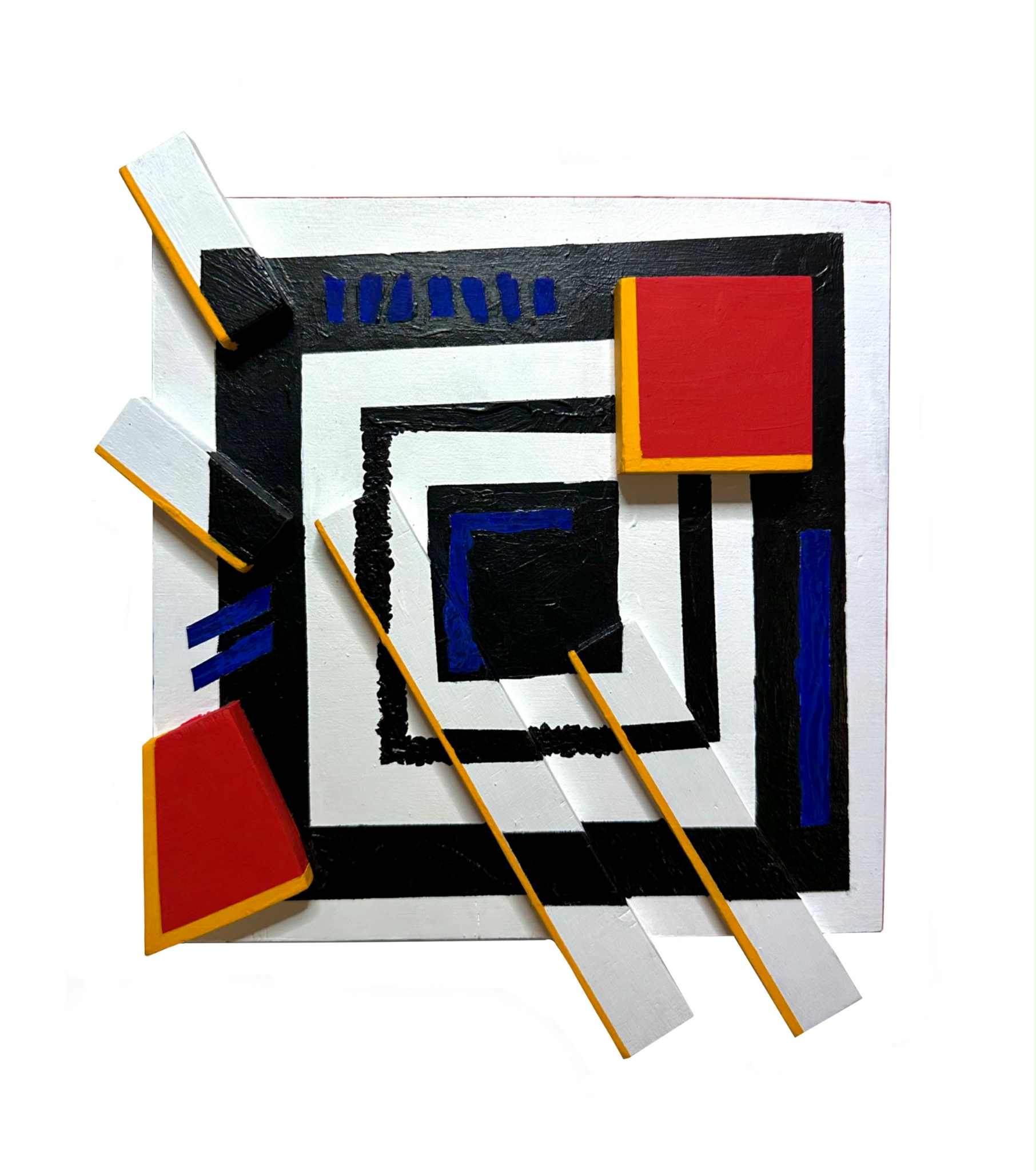 „Kosmos” 2025 asamblaż sklejka drewniana, marker akrylowy 40 × 40 cm